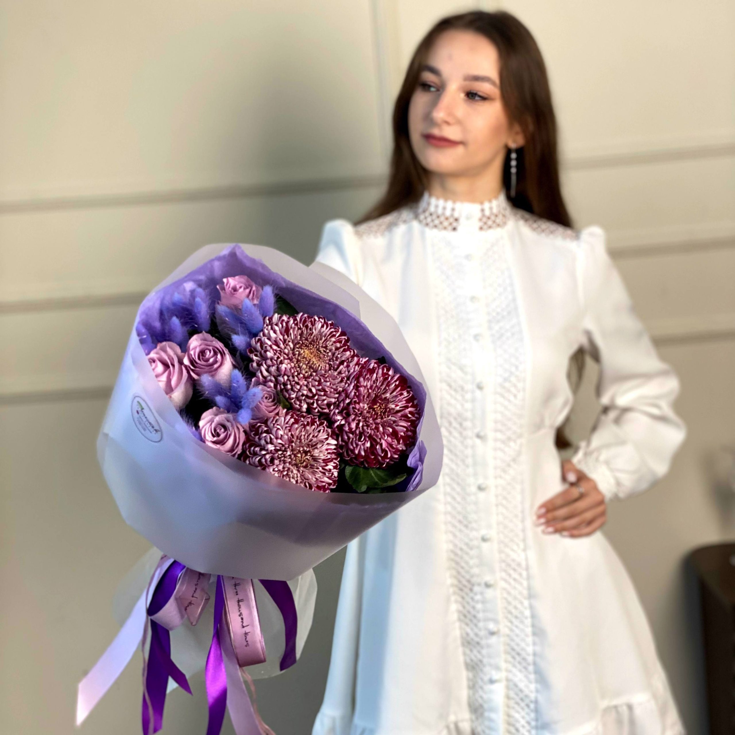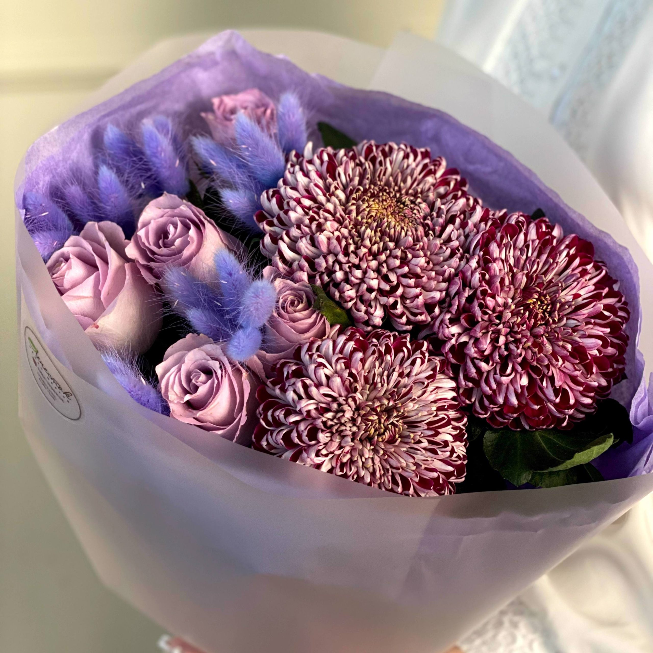Букет из хризантем Гилберт, лагуруса и роз в Тобольске